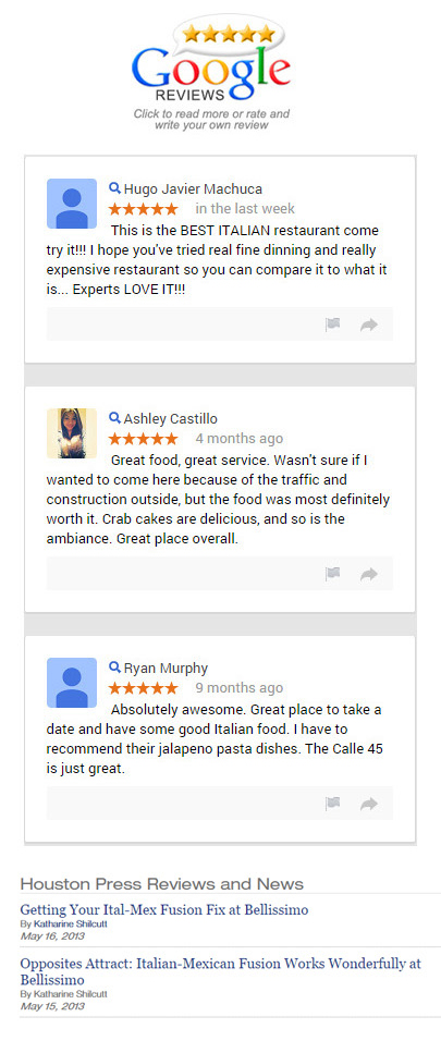 Questions? Give Us a Call or Email us at Bellissimoristorantehouston@gmail.com for more details.